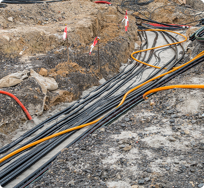 تنفيذ وتمديد شبكات الاتصالات (الألياف الضوئية، الكوابل، الأبراج)